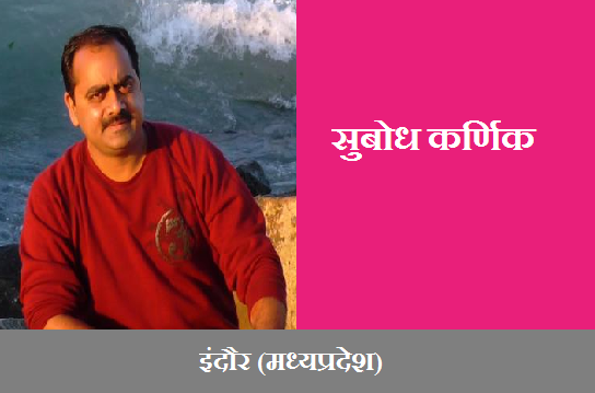 परिचय : सुबोध कर्णिक इंदौर (मध्यप्रदेश) के निवासी हैं|इन्होंने इंदौर स्कूल ऑफ़ सोशल वर्क इंदौर से समाजकार्य में पोस्ट ग्रेजुएशन किया है | विगत 16 वर्ष से समाजकार्य के क्षेत्र में समाज के विभिन्न वर्गों के लिए स्वास्थ्य,शिक्षा,आजीविका एवं स्वच्छ भारत अभियान के लिए सक्रिय रूप से कार्यरत हैं |आपको कविता लिखने का बेहद शौक है|