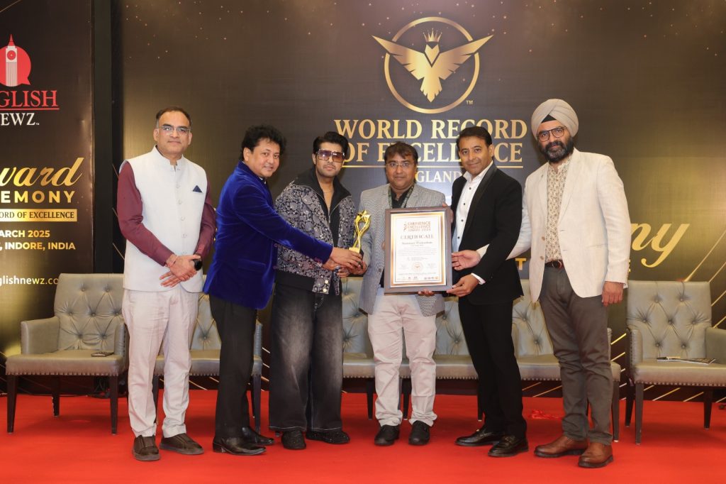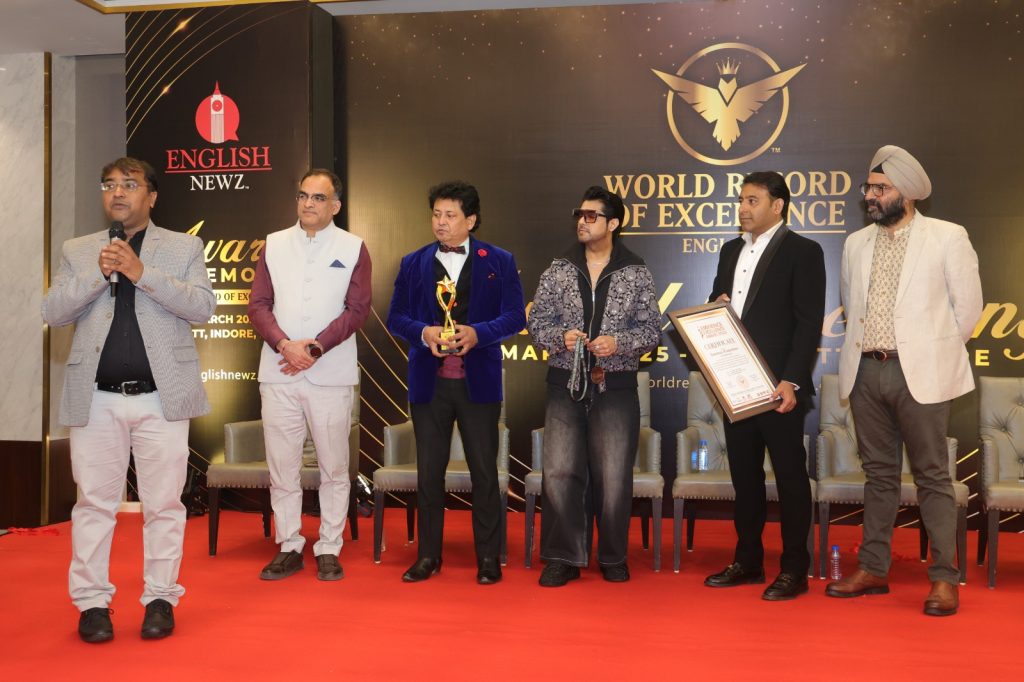 इन्दौर। हिन्दी पुस्तक प्रकाशन में गुणवत्ता और उत्कृष्टता के लिए वर्ल्ड रिकॉर्ड ऑफ़ एक्सीलेंस व इंग्लिश न्यूज़ ने शनिवार शाम मैरियट होटल में आयोजित समारोह में संस्मय प्रकाशन को सम्मानित किया। यह सम्मान डॉ. अर्पण जैन ‘अविचल’ ने फ़िल्म अभिनेता व तारक मेहता का उल्टा चश्मा में अय्यर के बॉस का क़िरदार निभा रहे कमल घिमिरे (भारतीय टीवी अभिनेता), विशाल कपूर (फ़िल्म निर्माता और बॉलीवुड फैशन आइकन) व विशेष अतिथि अनिल जेठवानी (भारत सरकार), माला सिंह ठाकुर (सामाजिक कार्यकर्ता) और गजेंद्र नारंग (रियल एस्टेट विशेषज्ञ और सामाजिक कार्यकर्ता) के करकमलों से ग्रहण किया।