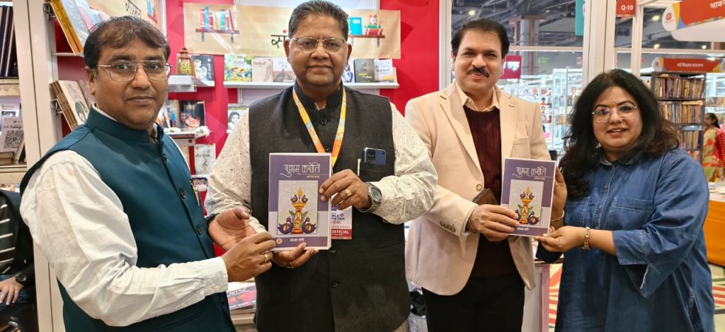 नई दिल्ली। भारत मण्डपम में आयोजित 53वें विश्व पुस्तक मेले में हॉल 2 में संस्मय प्रकाशन के स्टॉल R-36 पर इंदौर की लेखिका संध्या राणे की पुस्तक ‘शुभम करोति’ का लोकार्पण सुप्रसिद्ध व्यंग्यकार डॉ. लालित्य ललित एवं शिक्षाविद् प्रो. हरीश अरोड़ा, मातृभाषा उन्नयन संस्थान के राष्ट्रीय अध्यक्ष डॉ. अर्पण जैन ‘अविचल’ व संस्मय की निदेशक भावना शर्मा ने किया।