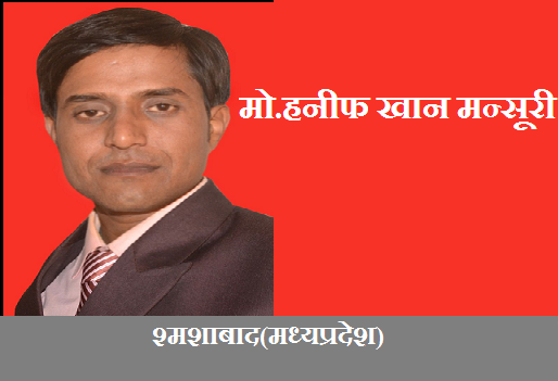 परिचय : मोहम्मद हनीफ खान मन्सूरी पत्रकार होने के साथ ही स्थानीय कवि भी हैं। आपने एमएससी(कम्प्यूटर) की शिक्षा प्राप्त की है और विदिशा जिला के श्मशाबाद में रहते हैं। लेखन कार्य छात्र के रूप में प्रारम्भ किया था,जो अब भी जारी है। स्थानीय अखबारों एवं पत्रिकाओं में आपकी रचनाएं प्रकाशित हुईं हैं।