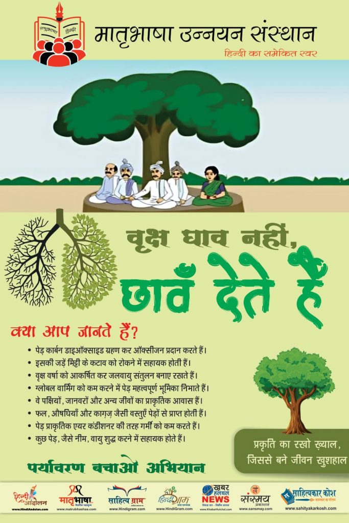 राष्ट्रीय अध्यक्ष डॉ. अर्पण जैन ‘अविचल’ ने बताया कि ‘संस्थान न केवल मातृभाषा बल्कि समाज, पर्यावरण और राष्ट्र के प्रति सजग है। संस्थान द्वारा पोस्टर शहर के सैंकड़ों स्थानों पर लगाए जाएँगे और इसके माध्यम से लोगों को वृक्ष बचाने के लिए जागरुक किया जाएगा।’
