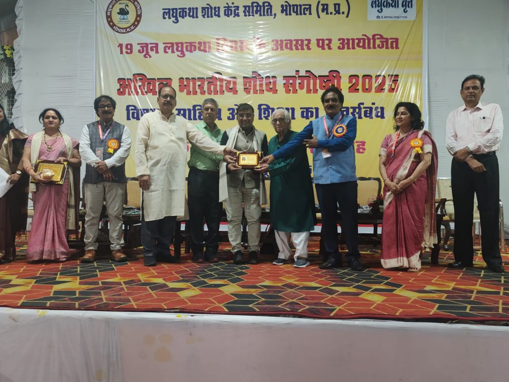 भोपाल। लघुकथा दिवस के अवसर पर लघुकथा शोध केन्द्र समिति द्वारा भोपाल के हिन्दी भवन में शुक्रवार को लघुकथा पर्व 2025 का आयोजन किया गया। इस आयोजन में मातृभाषा उन्नयन संस्थान के राष्ट्रीय अध्यक्ष, हिन्दीयोद्धा डॉ. अर्पण जैन ‘अविचल’ को हिन्दी भाषा के प्रचार-प्रसार के लिए ‘विशिष्ट हिन्दी सेवी सम्मान 2025’ से सम्मानित किया गया। कार्यक्रम की अध्यक्षता वरिष्ठ साहित्यकार डॉ. देवेंद्र दीपक ने की व सारस्वत अतिथि नई दिल्ली से सुभाष नीरव, डॉ. उमेश कुमार सिंह, शोध केन्द्र निदेशक कान्ता रॉय एवं उपाध्यक्ष घनश्याम मैथिल रहे।