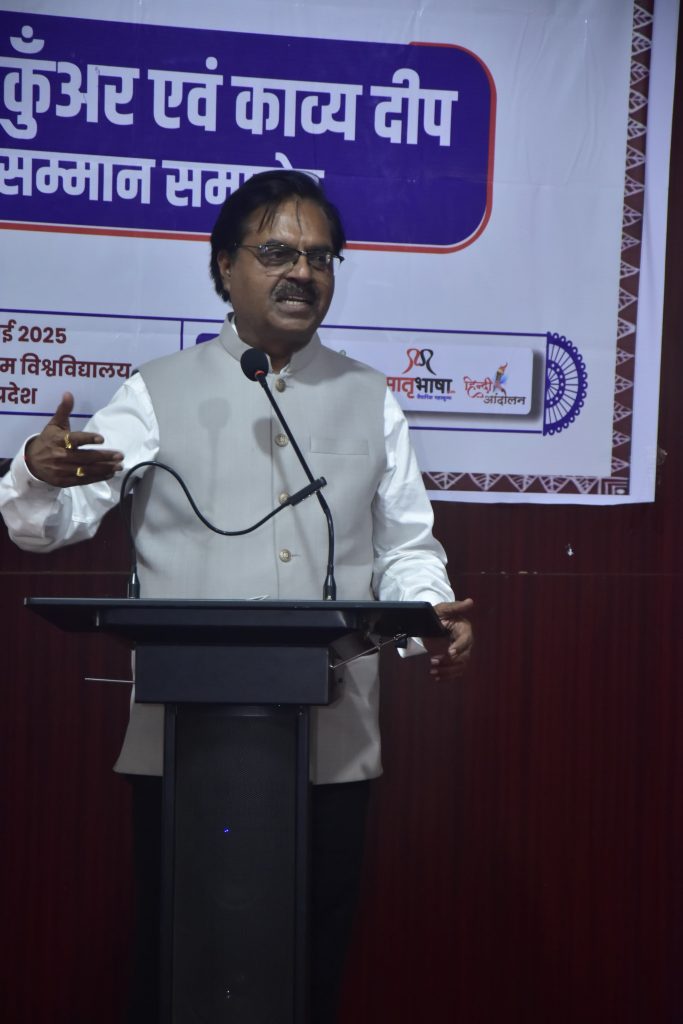 मुख्य वक्ता के रूप में डॉ. शैलेन्द्र कुमार शर्मा ने कुँअर बेचैन की रचनात्मक यात्रा को याद करते हुए कहा कि ‘वे आधुनिक हिंदी काव्य परंपरा के एक सशक्त स्तंभ थे।’ उन्होंने बताया कि ‘कुँअर बेचैन ने गीत, ग़ज़ल, महाकाव्य और मुक्तछंद जैसी विविध विधाओं में रचना की और समयानुसार अपने काव्य स्वरूप को ढाला। वे केवल एक कवि नहीं, बल्कि एक गंभीर साहित्यकार, शोध निर्देशक और अकादमिक योगदानकर्ता भी थे। उनकी कविताओं में भाव, विचार और संवेदना का सामंजस्य दिखाई देता है।’ डॉ. शर्मा ने यह भी कहा कि ‘बेचैन की रचनाओं में जीवनबोध, सामाजिक सरोकार और आत्मचिंतन की स्पष्ट झलक मिलती है। वे साहित्य को केवल मंच तक सीमित न रखकर उसमें चिंतन, गहराई और नवाचार के पक्षधर थे। उन्होंने नवाचार और परंपरा के बीच संतुलन स्थापित करते हुए कविता को जनमानस से जोड़ने का सफल प्रयास किया।’