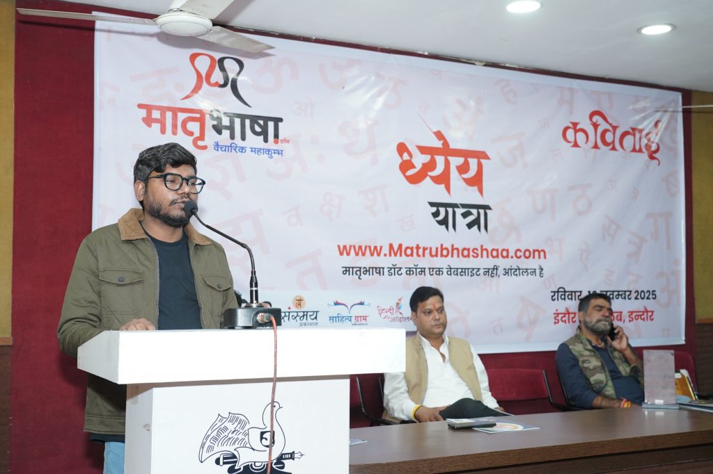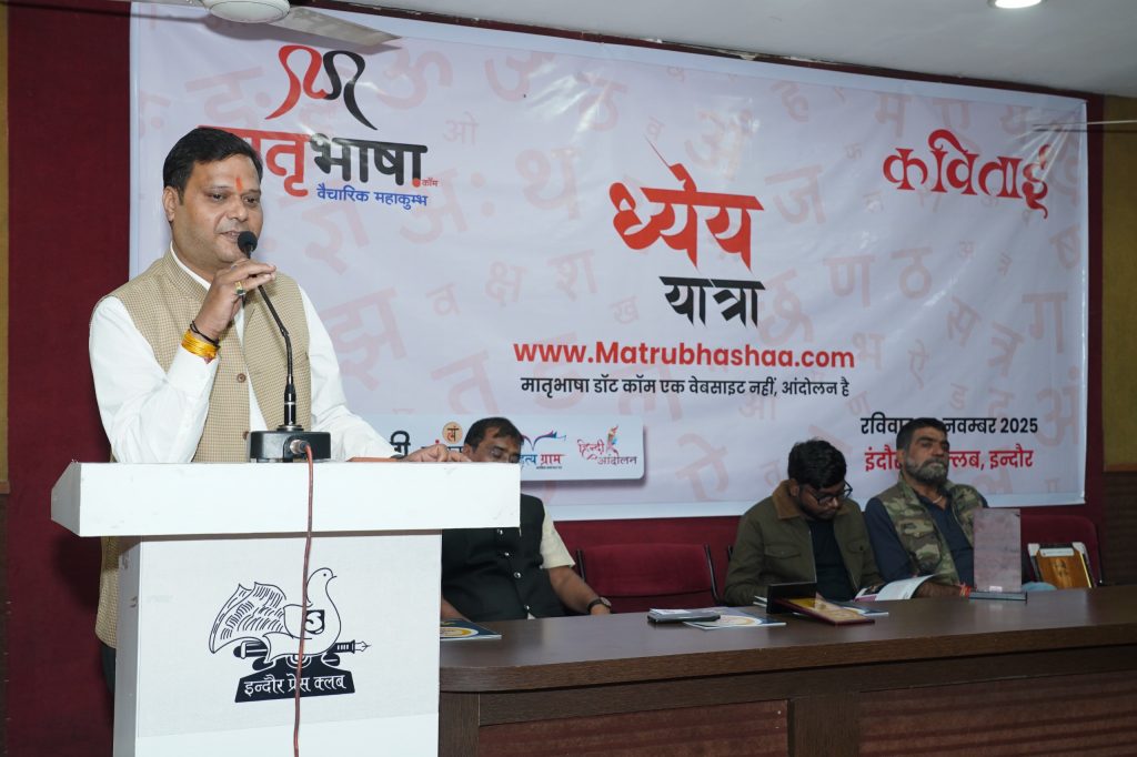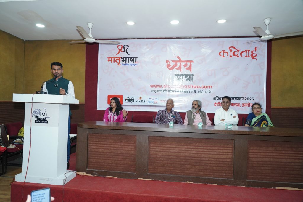 इंदौर। हिन्दी के तकनीकी विस्तार के लिए कार्यरत मातृभाषा डॉट कॉम की 9वीं वर्षगाँठ पर रविवार को आनंद मोहन माथुर सभागृह, इन्दौर प्रेस क्लब, इन्दौर में ‘ध्येय यात्रा व कविताई’ का आयोजन किया गया, जिसमें मुख्य अतिथि हिंदीनामा के संस्थापक अंकुश कुमार एवं अध्यक्षता प्रेस क्लब के अध्यक्ष दीपक कर्दम ने की। प्रेस क्लब उपाध्यक्ष संजय त्रिपाठी विशेष अतिथि रहे।